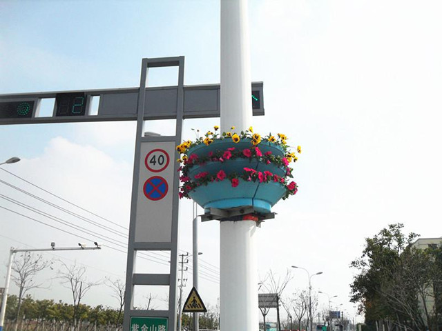 目前,青海路西路上共有14根燈桿都戴上了立體“花環(huán)”,接下將根據(jù)季節(jié)變化種上當季的花卉,全面提升園區(qū)道路綠化景觀效果。