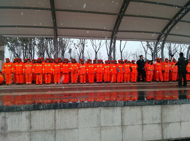 2月28日上午,雪花飄飄,建發(fā)公司市政物業(yè)部組織2015年度環(huán)衛(wèi)保潔作業(yè)人員進行崗前培訓和安全技術交底工作。新招錄的環(huán)衛(wèi)工人統(tǒng)一穿著嶄新的工服,推著嶄新的保潔三輪車,列隊集結(jié),整裝待發(fā)。