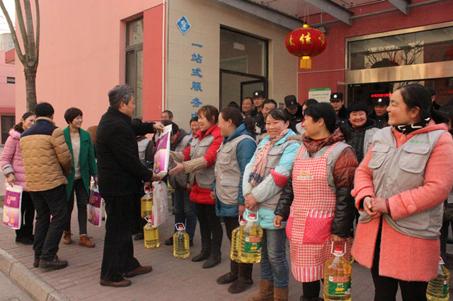 在新春佳節(jié)即將來(lái)臨之際,2月12日上午,園區(qū)城管局副局長(zhǎng)楊同異帶領(lǐng)建發(fā)公司成員慰問(wèn)奮戰(zhàn)在一線保潔及保安人員,為他們送上了米、面粉、油等慰問(wèn)品。
