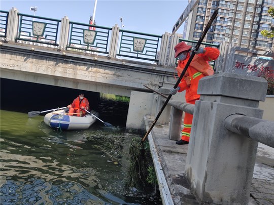 公司根據(jù)各河道水草生長(zhǎng)情況,采用“先割后清”、“分段切割,集中打撈”的方法進(jìn)行推進(jìn)式作業(yè),每天組織近30名人員分切割、打撈和清運(yùn)三個(gè)小組集中開展水清打撈清運(yùn)作業(yè),截止目前,園區(qū)利民河、富民河、十支河、民便河水草已全面清理結(jié)束,蔡莊大溝水計(jì)4月底前全面清撈到位,重現(xiàn)園區(qū)“碧波潺潺、河暢水美”的河道景觀。