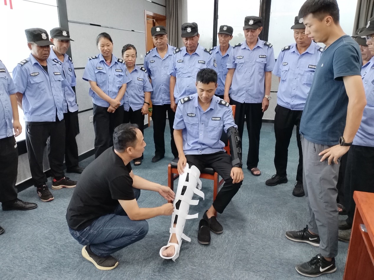 隨后,李建良還結(jié)合當(dāng)前實(shí)際,告知大家各類(lèi)外傷緊急救護(hù)處理的方法,從爆炸傷、燙傷、骨折、開(kāi)放性損傷的急救處理分別講解了傷口清理、壓迫止血、三角帶包扎、骨折固定等方法。