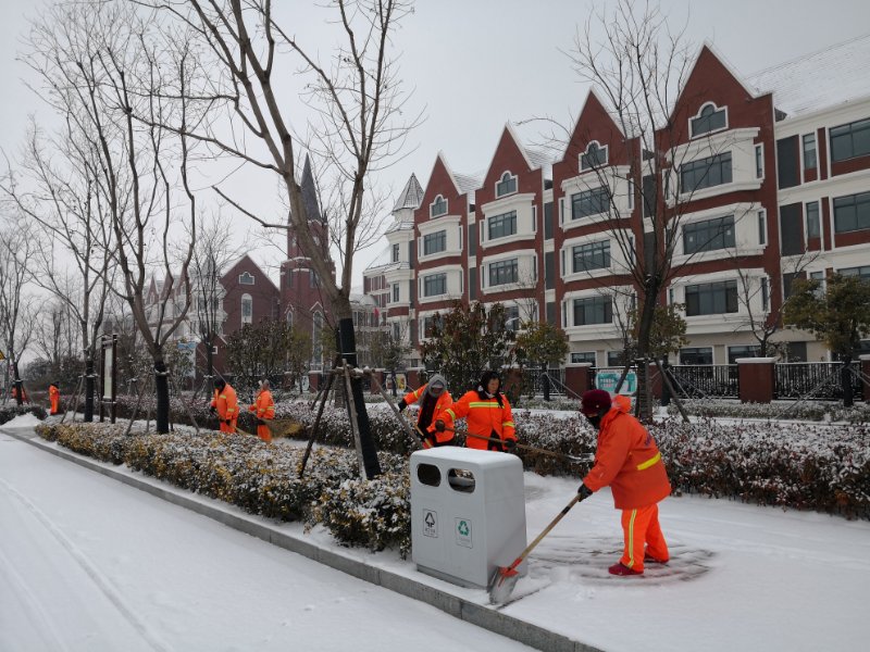 此次掃雪除冰,蘇宿園區(qū)共出動(dòng)環(huán)衛(wèi)工人近200人,城管隊(duì)員4人,其它人員約50人,雪鏟車(chē)1輛,平地機(jī)1輛,皮卡車(chē)7輛,運(yùn)輸車(chē)1輛,融雪劑10噸,人工除雪工具若干。