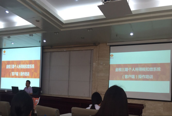 根據(jù)國家稅務(wù)總局要求,江蘇將于2016年10月1日起正式上線金稅三期個人所得稅扣繳系統(tǒng),扣繳義務(wù)人在進(jìn)行網(wǎng)上個稅明細(xì)扣繳申報時,需采用金稅三期個人所得稅扣繳系統(tǒng)。為了公司能順利完成個稅扣繳工作,9月1日下午,公司財務(wù)人員參加了宿遷地稅舉辦的金稅三期個人所得稅代扣代繳系統(tǒng)培訓(xùn)。
