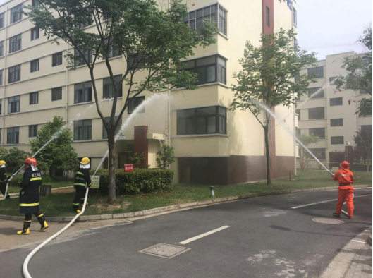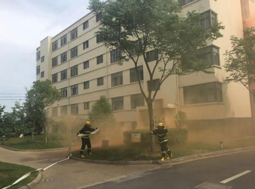 14:20分,園區(qū)公舍2號宿舍樓冒起滾滾濃煙,隨即刺耳的火災(zāi)警報聲響徹園區(qū),義務(wù)消防戰(zhàn)斗人員接到指示立即啟動消防三輪車奔赴火災(zāi)現(xiàn)場。不到一分鐘時間,一至六層的租戶在疏散人員的帶領(lǐng)下掩住口鼻,彎著腰,有序地從宿舍的消防安全通道逃生。隨即,消防戰(zhàn)斗人員按照指示迅速開啟消防水泵對“起火”后的宿舍樓進(jìn)行快速滅火,救護人員隨即趕到現(xiàn)場參加救護,演練持續(xù)近五分鐘后圓滿完成。