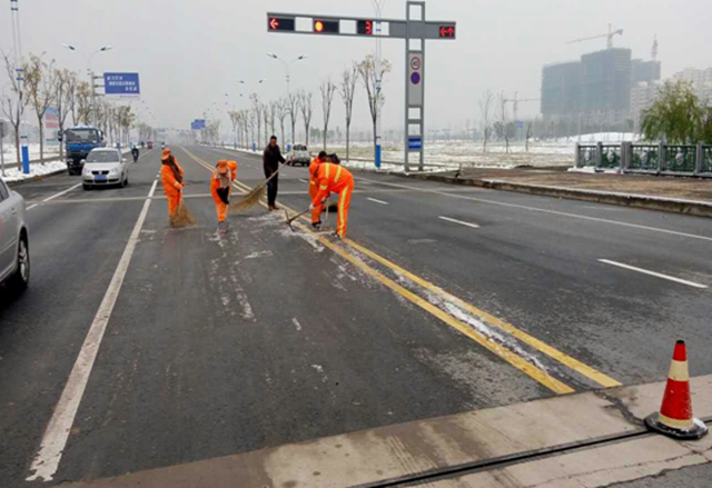 11月24日,小雪節(jié)氣剛過,宿遷便迎來了一場(chǎng)突如其來的小雪,雖然路面積雪不多,但伴隨著凜冽的寒風(fēng),氣溫驟降,次日早晨部分路面仍存在結(jié)冰現(xiàn)象,加上路面落葉較多,環(huán)衛(wèi)工人天未亮就走上街頭開始除雪化冰,對(duì)于他們來講,這注定又是忙碌的一天,經(jīng)過3個(gè)小時(shí)緊張而有序的忙碌,基本完成了園區(qū)主次干道的清掃工作。