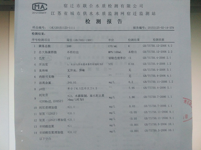 11月23日下午,建發(fā)公司組織宿遷市聯(lián)合市政工程有限公司開展三期生活水箱下半年清洗工作。截止25日,水箱清洗、消毒,水質檢測已全面完成。